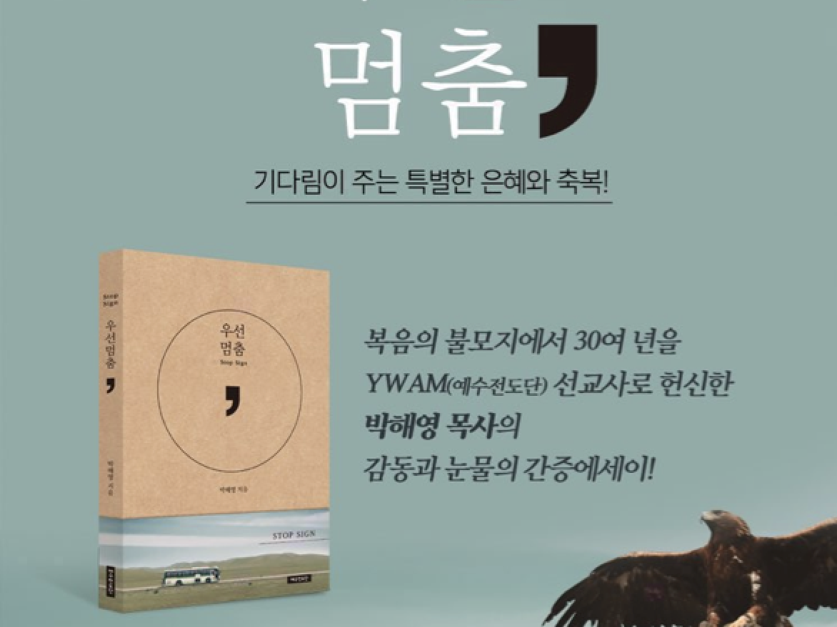 Details동북아시아 선교사로서 본교 M.Div 과정을 졸업하고 현재 풀러신학교 선교학 박사 (D.Miss) 재학 중인 박해영 목사가 쓴 “우선 멈춤” (예수전도단) 신간이 발행되었다.